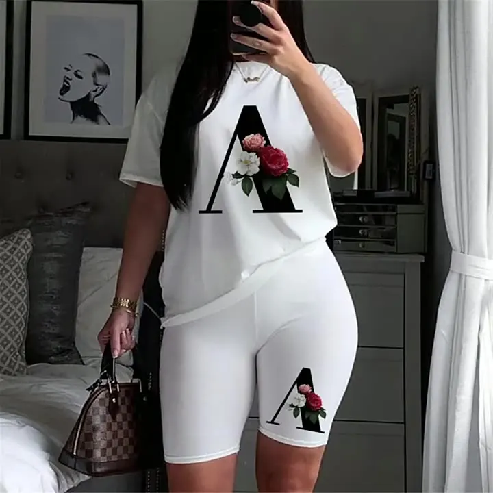 Title:New round neck suit white print temperament commuter cotton short-sleeved loose temperament bottoming shirt