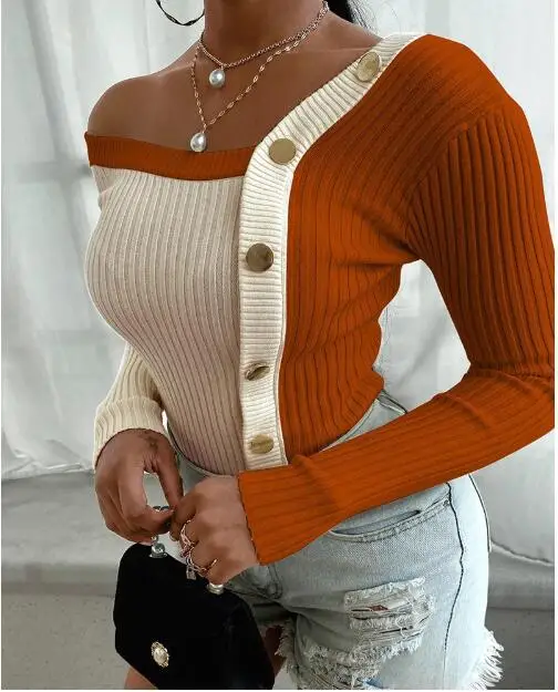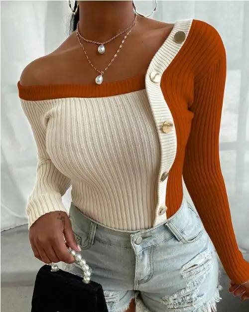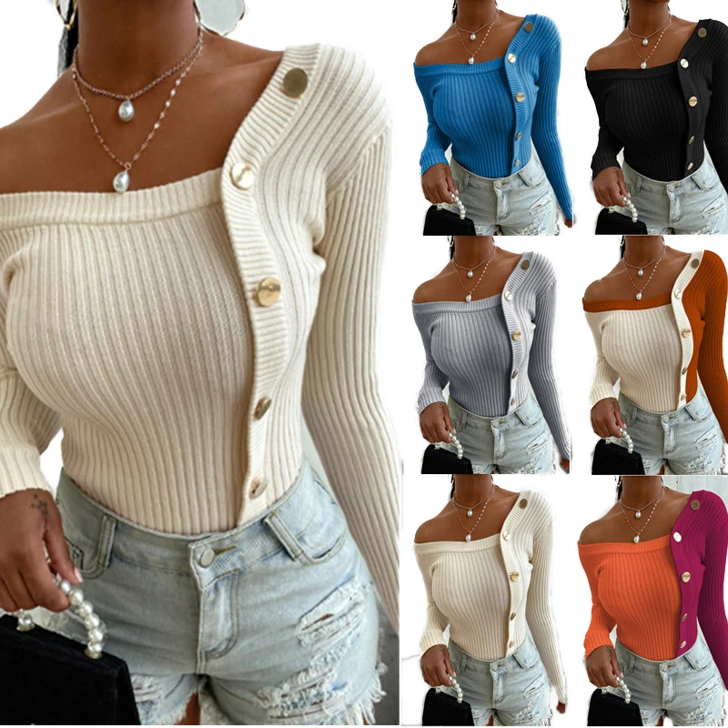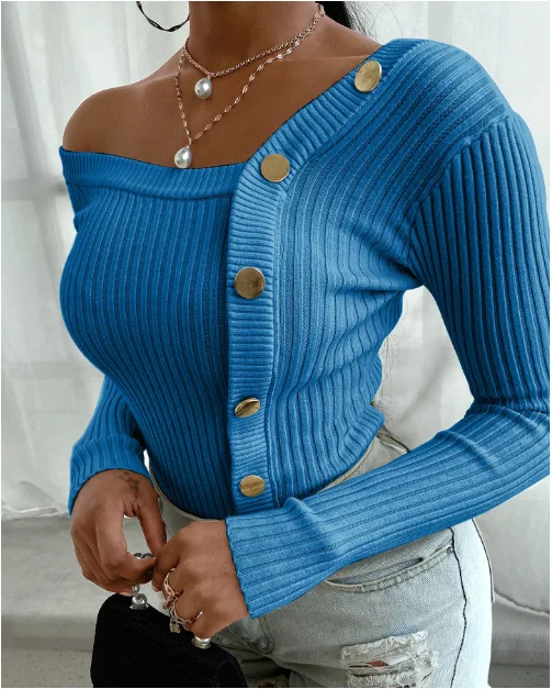 OFF SHOULDER BUTTON DOWN LONG SLEEVE BLOUSE