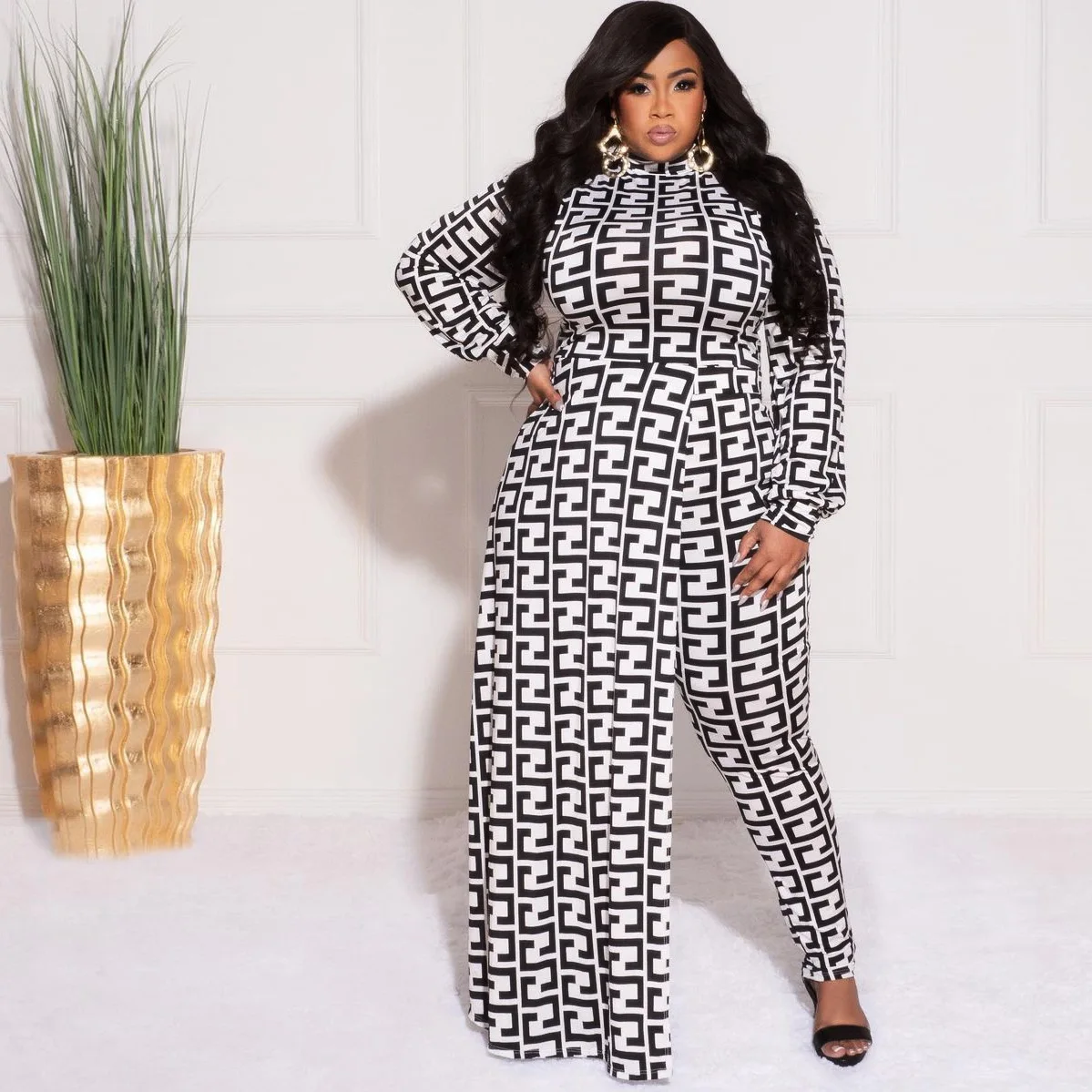 SHAREE PLUS SIZE KNIT LONG SLEEVE JUMPSUITE